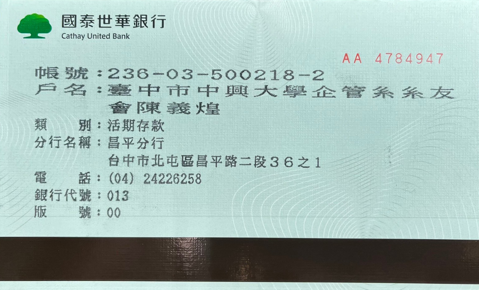 第四條:本會會址設於國立中興大學企業管理學系(臺中市南區國光路二五○號)。