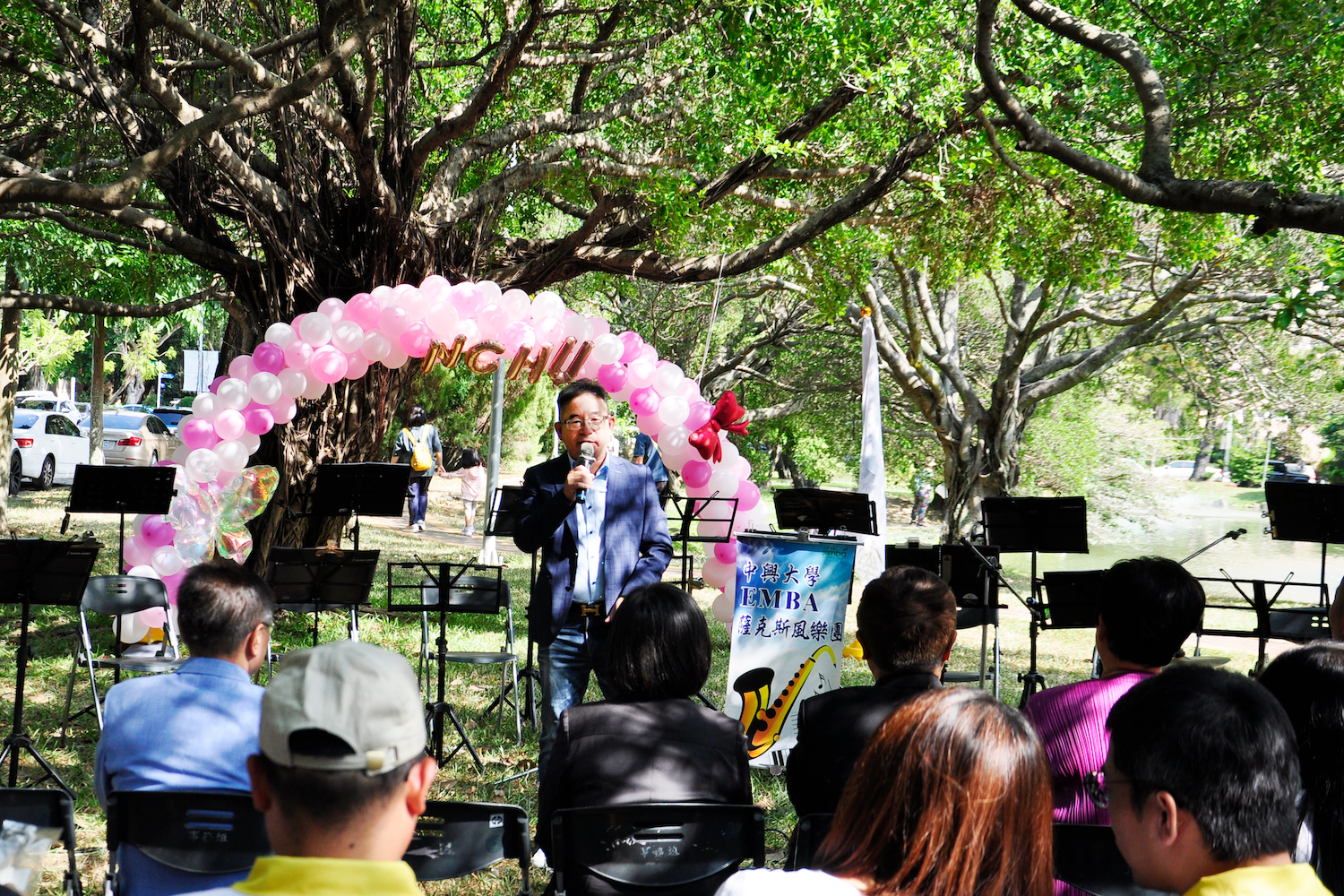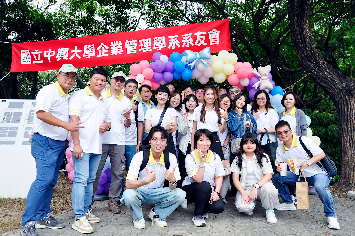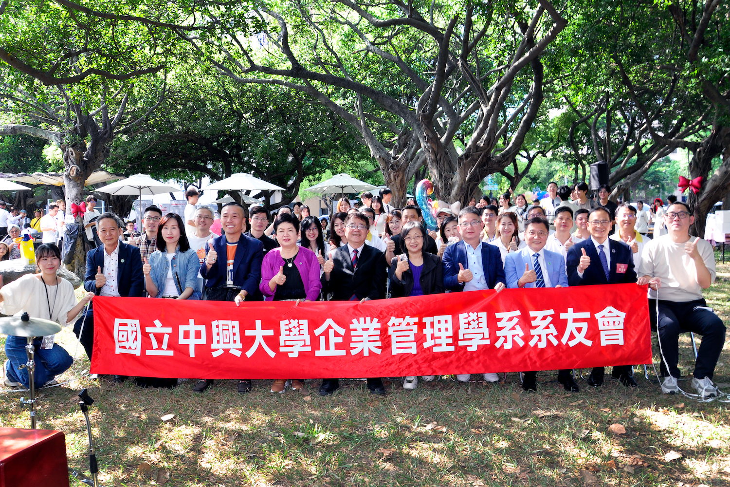 中興大學106週年校慶活動於2025/11/1在校園內許多地點舉行。社館大樓對面的中興湖畔,由中興大學企管系系友會所主辦的「湖畔咖啡音」音樂慶祝活動於下午1點開始。活動由系友會理室長陳義煌開場,企管系系主任蔡玫亭接續致詞。歡迎校長詹富智、EMBA校友會理事長林澤輝、及所有蒞臨的貴賓、師長、學長姐們共襄盛舉。