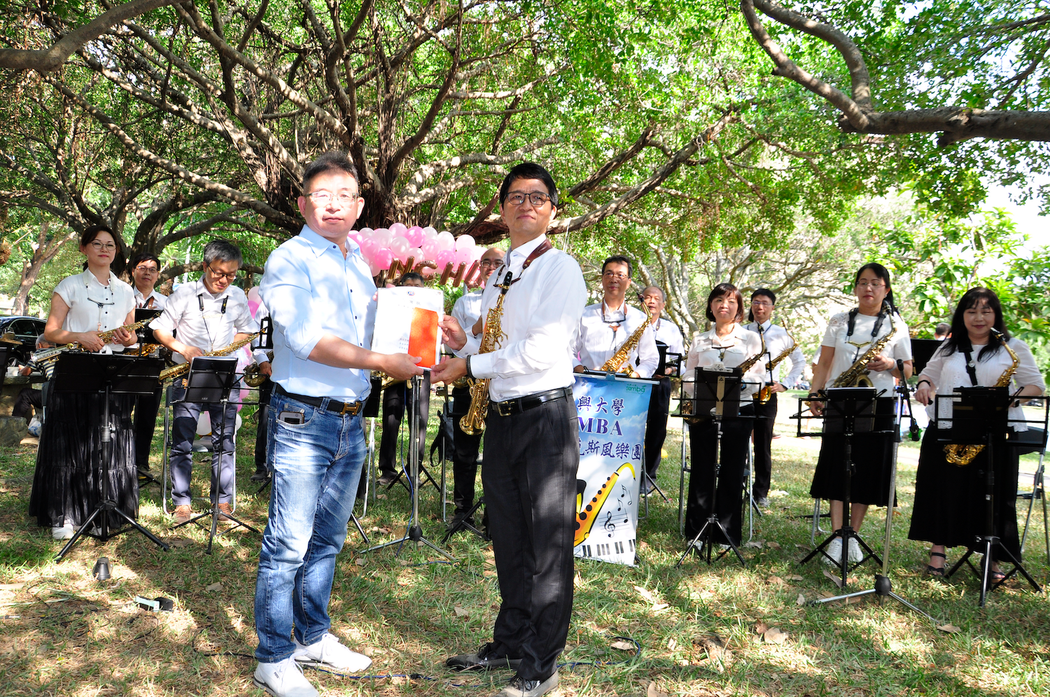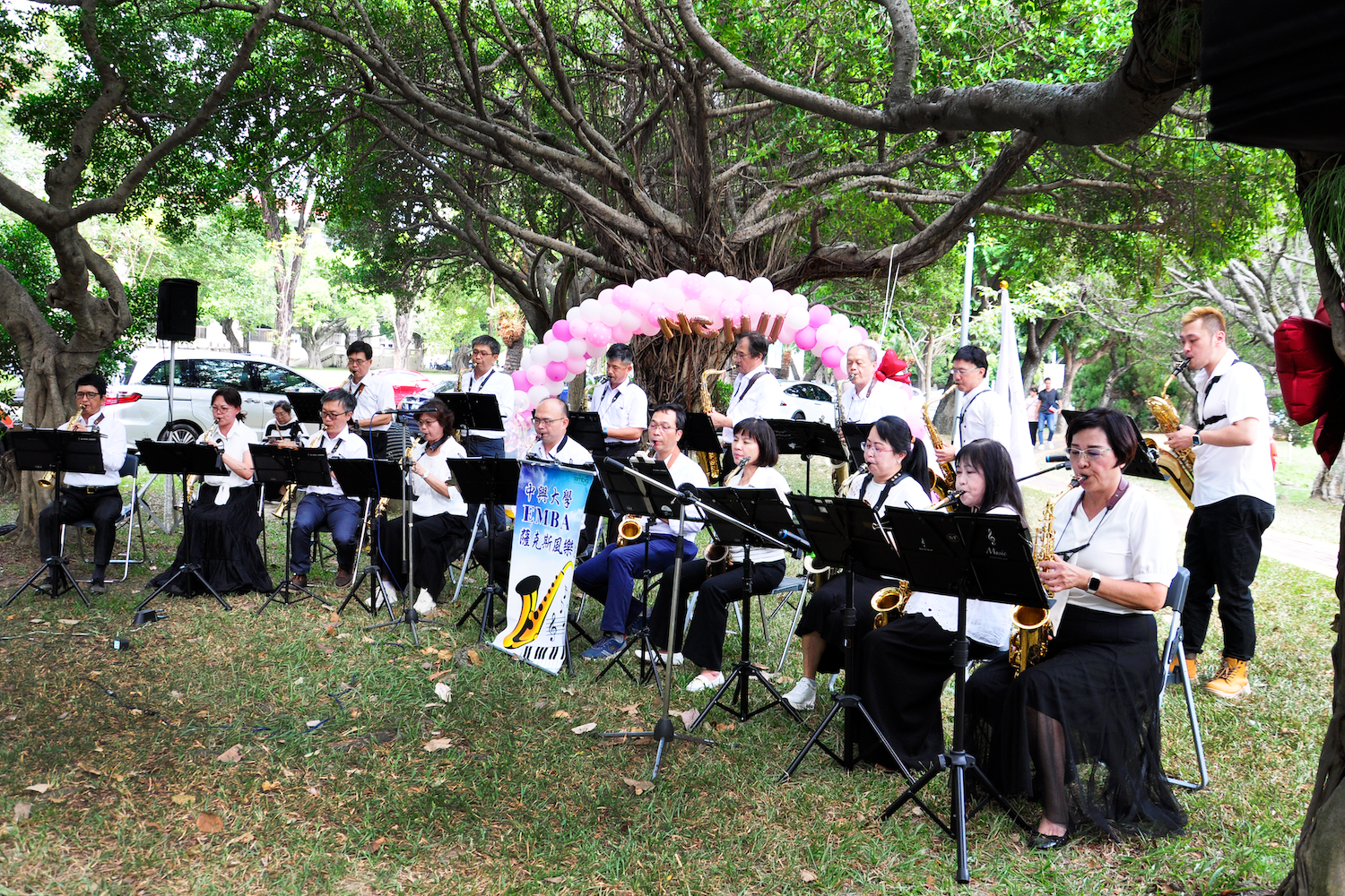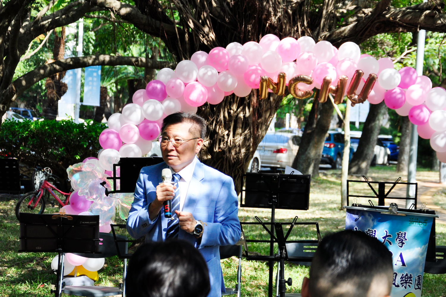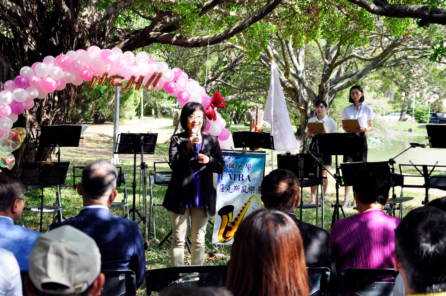 中興大學106週年校慶活動於2025/11/1在校園內許多地點舉行。社館大樓對面的中興湖畔,由中興大學企管系系友會所主辦的「湖畔咖啡音」音樂慶祝活動於下午1點開始。活動由系友會理室長陳義煌開場,企管系系主任蔡玫亭接續致詞。歡迎校長詹富智、EMBA校友會理事長林澤輝、及所有蒞臨的貴賓、師長、學長姐們共襄盛舉。